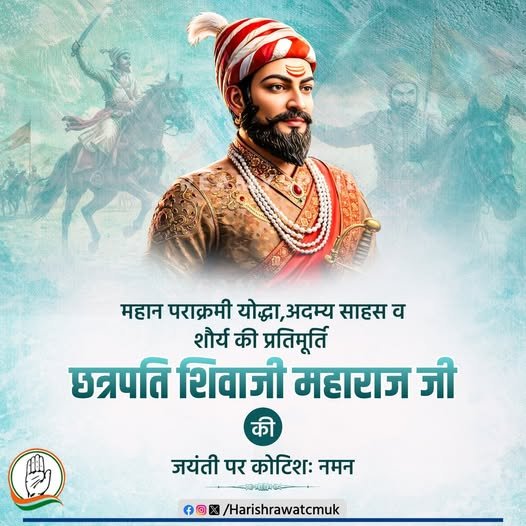 पूर्व मुख्यमंत्री उत्तराखंड श्री हरीश रावत जी ने अदम्य साहस, स्वाभिमान और स्वराज के अमर प्रतीक छत्रपति शिवाजी महाराज जी…