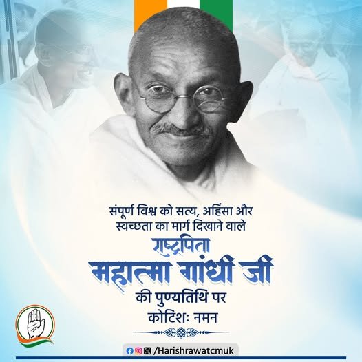 महात्मा गांधी जी की पुण्यतिथि पर हरीश रावत का संदेश और उसका गहरा अर्थ संपूर्ण विश्व को सत्य, अहिंसा और…