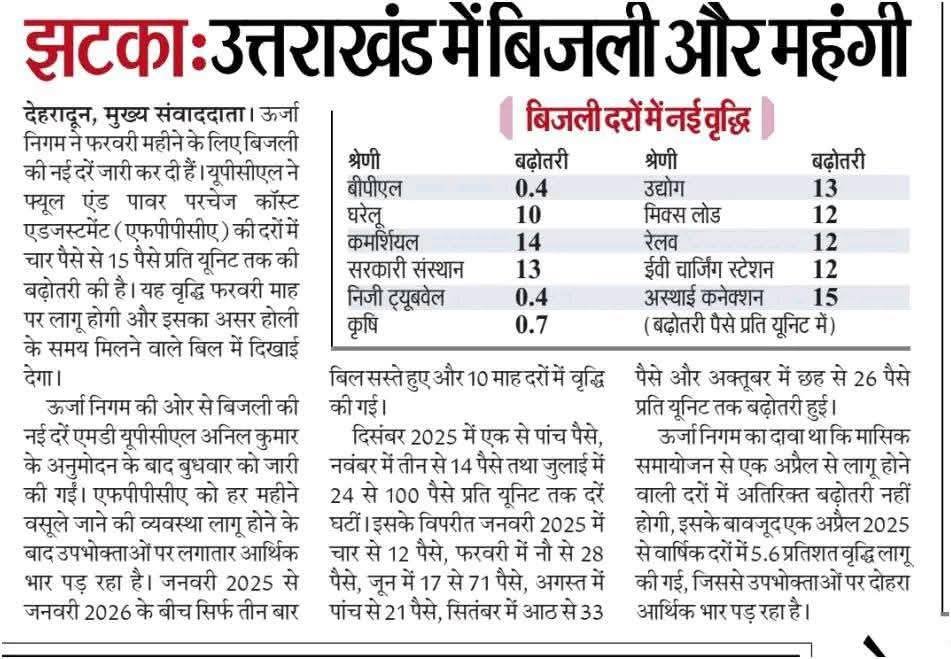 महंगाई के बाद अब बिजली बिल से जनता पर अंतिम प्रहार उत्तराखंड में बिजली एक बार फिर महंगी कर दी…